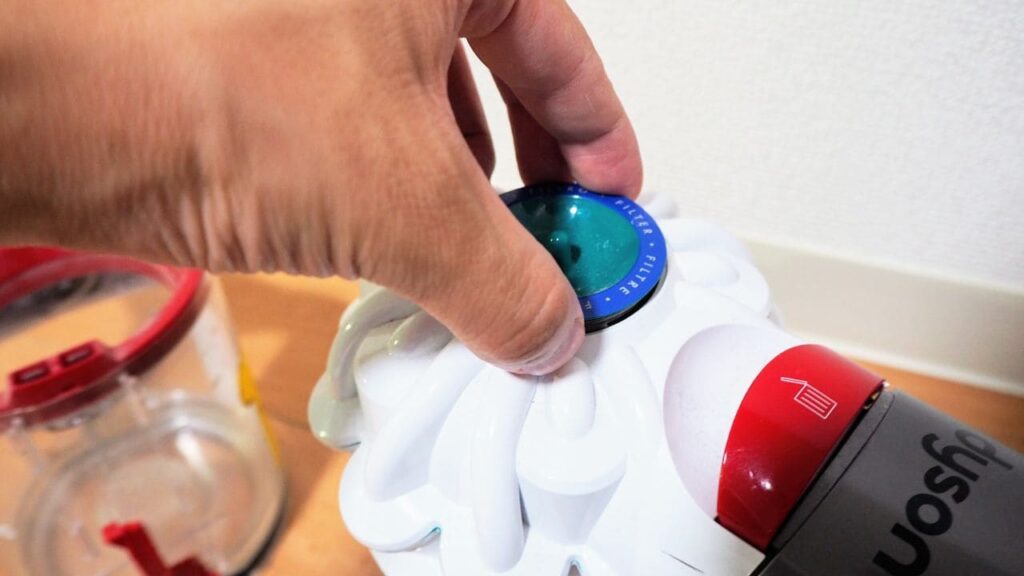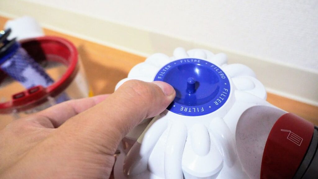本体のサイクロンの上の部分のキャップらしきものを外します。