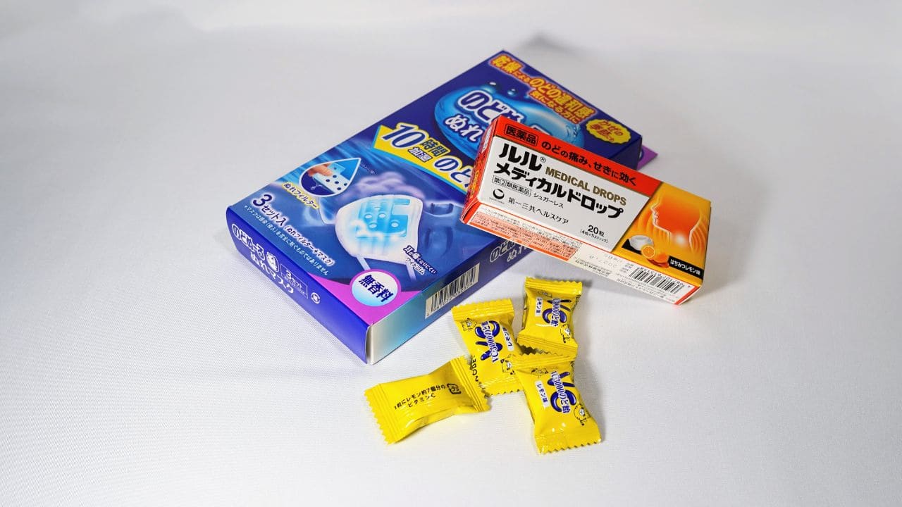のど飴・マスク・龍角散などをすぐ使える状態に。